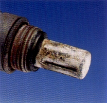 An internal coolant leak will turn the tip of the sensor a green whitish brown color. |